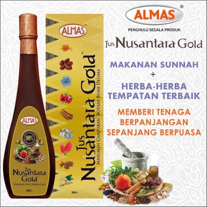 JUS NUSANTARA GOLD KESIHATAN RM 14800 RM 10500-JUS NUSANTARA GOLD quantity Add to cart. Almas Jus Nusantara diperkaya dengan rumusan bahan botani yang menyimpan 1001 khasiat bagi mengatasi pelbagai jenis penyakit kronik yang menjejaskan tahap kesihatanAlmas jus nusantara juga sarat dengan kebaikan dari sumber makanan Sunnah seperti madu ku. Ramadhan Al Mubarak 1442H 2021 Sedikit Info.
